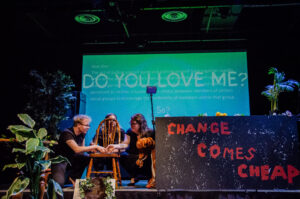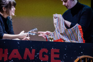 Pants is an absurd comedy that follows the journey of a gay man learning to accept his sexuality. While shopping for pants to wear to his upcoming first day with a guy, the man is surprised that the perfect pair of pants have become impossible to remove. Worse for him, the pants can talk… and are very homophobic. Pants is a ridiculous play full of laughs, puppets, big twists, and turns that might leave you confused, but more than entertained.