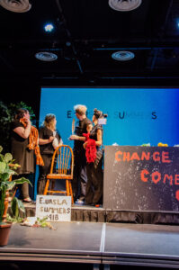 Hollywood. It can’t come up with original ideas and feeds off the money of the pandered public. Watch as a film falls apart while a greedy executive tries desperately to squeeze every coin out of the tragic events of 9/11. A wonderful satire penned by Mason Arsenault, Grandmama Mama’s Baby Food Presents the Legend of 9/11, this show will not let up on the jokes, have your sides hurting, and mind tingling after experiencing this staged reading on September 11th 2024.
